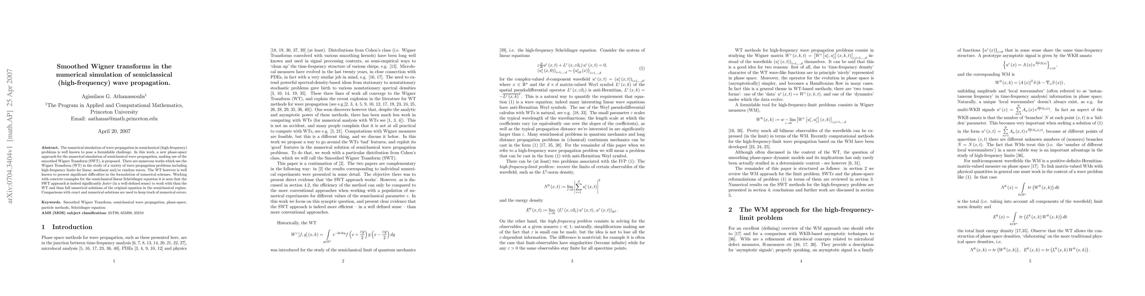 The numerical simulation of wave propagation in semiclassical (high-frequency) problems is well known to pose a formidable challenge. In this work, a new phase-space approach for the numerical simulation of semiclassical wave propagation, making use of the smoothed Wigner Transform (SWT), is proposed. There are numerous works which use the Wigner Transform (WT) in the study of a variety of wave propagation problems including high-frequency limits for linear, nonlinear and/or random waves. The WT however is well known to present significant difficulties in the formulation of numerical schemes. Working with concrete examples for the semiclassical linear Schrodinger equation it is seen that the SWT approach is indeed significantly faster (in a well-defined sense) to work with than the WT and than full numerical solutions of the original equation in the semiclassical regime. Comparisons with exact and numerical solutions are used to keep track of numerical errors.