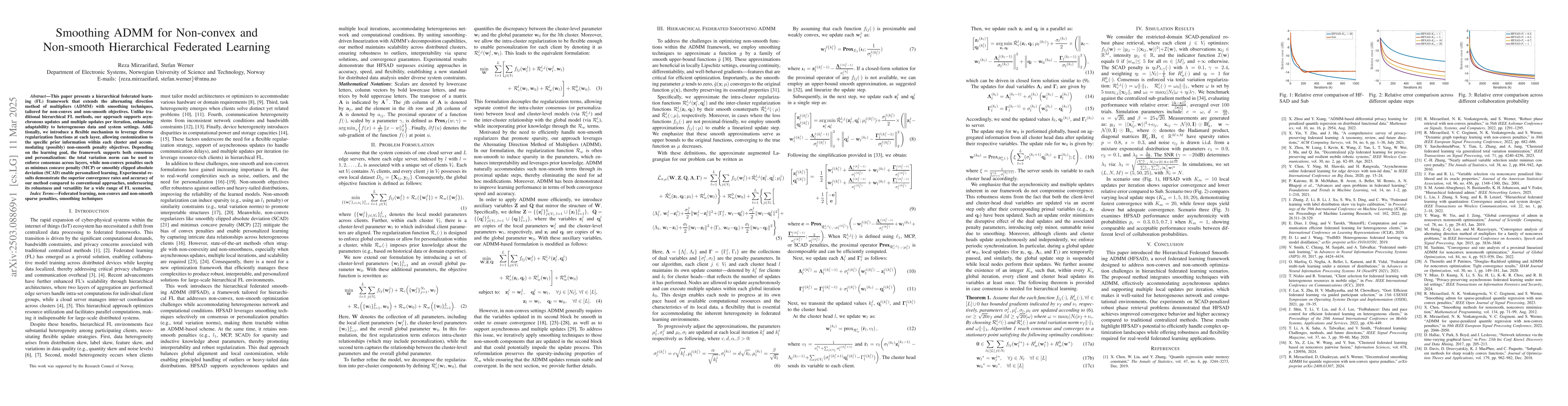 This paper proposes a smoothing ADMM framework for non-convex and non-smooth hierarchical federated learning, supporting asynchronous updates and diverse regularization functions. Experimental results show superior convergence and accuracy compared to traditional methods.