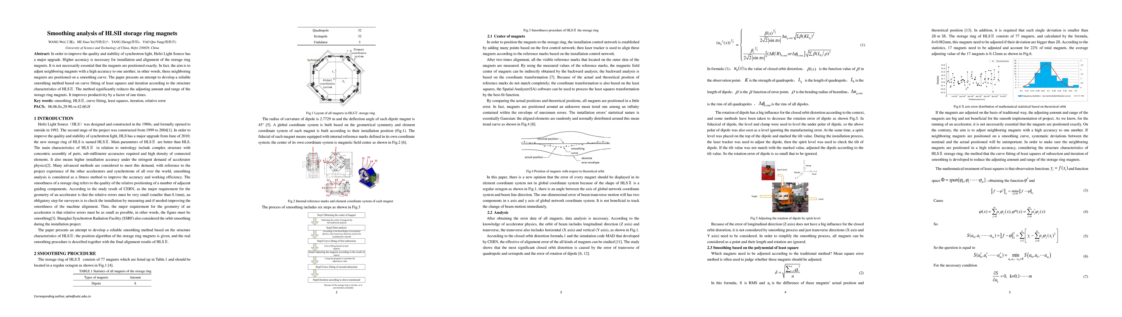 This paper develops a smoothing method for HLSII storage ring magnets using least squares curve fitting and iteration, aiming to adjust neighboring magnets to a smoothing curve for better alignment. This method reduces adjustment effort and improves productivity.