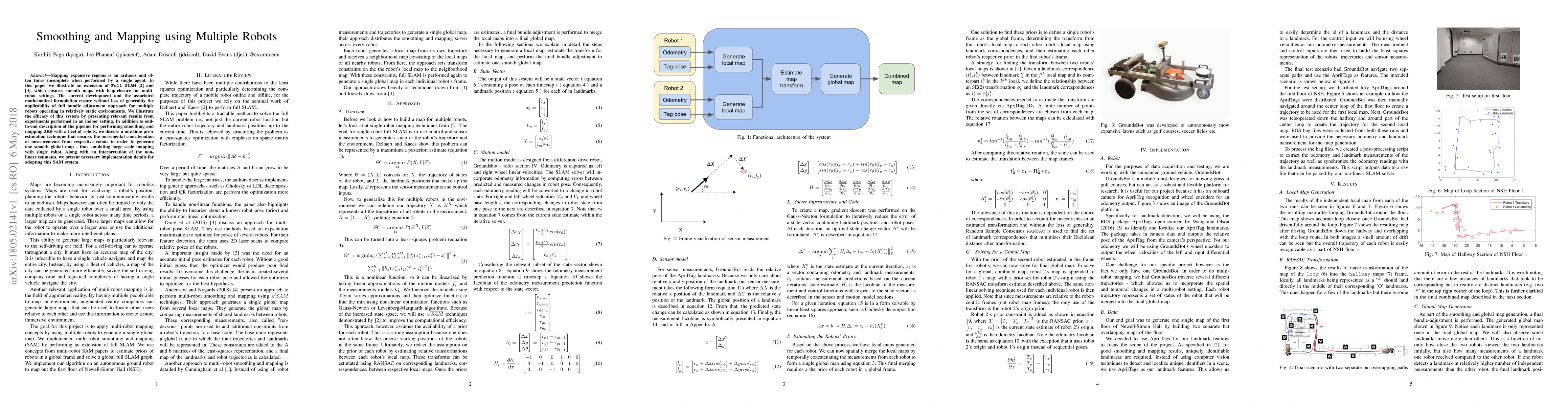This paper extends Full SLAM to multi-robot environments, ensuring smooth maps with loop-closure through a bundle adjustment approach. The proposed SAM system combines incremental measurements from multiple robots to generate a single, coherent global map, validated through experiments in an indoor setting.