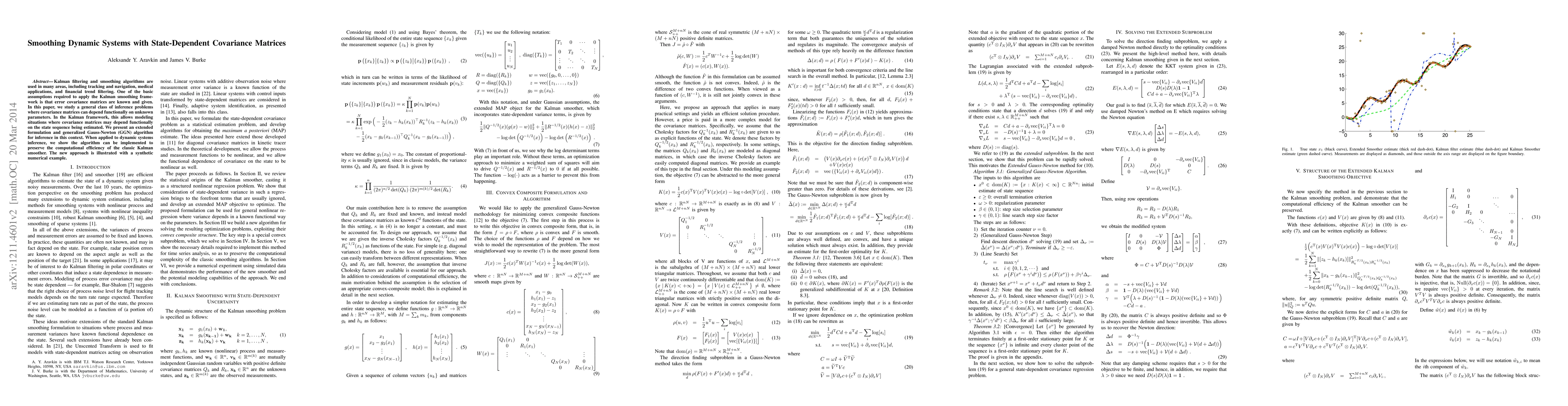 Researchers developed a new algorithm to estimate dynamic systems with state-dependent covariance matrices, extending Kalman filtering and smoothing for more complex applications.