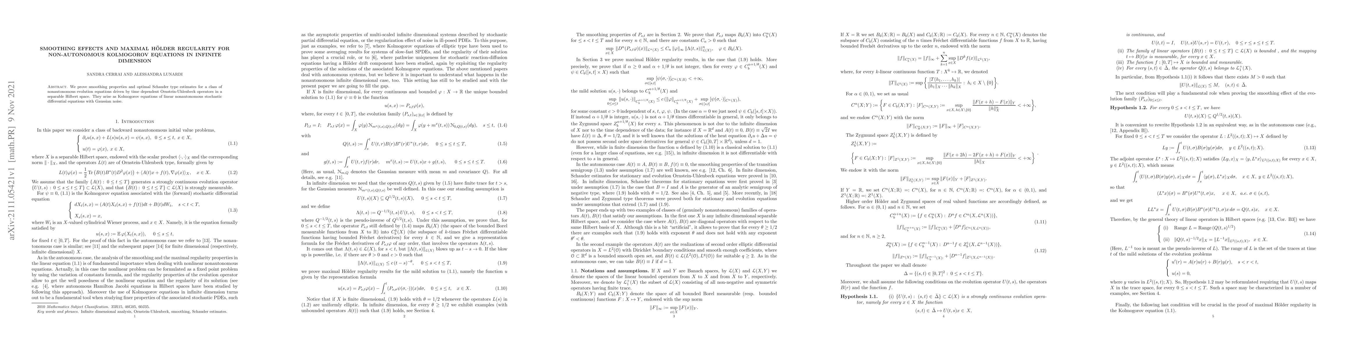 Summary: The paper establishes smoothing properties and optimal Schauder estimates for nonautonomous evolution equations driven by time-dependent Ornstein-Uhlenbeck operators in infinite dimensions, relevant to the Kolmogorov equations of linear stochastic differential equations with Gaussian noise.