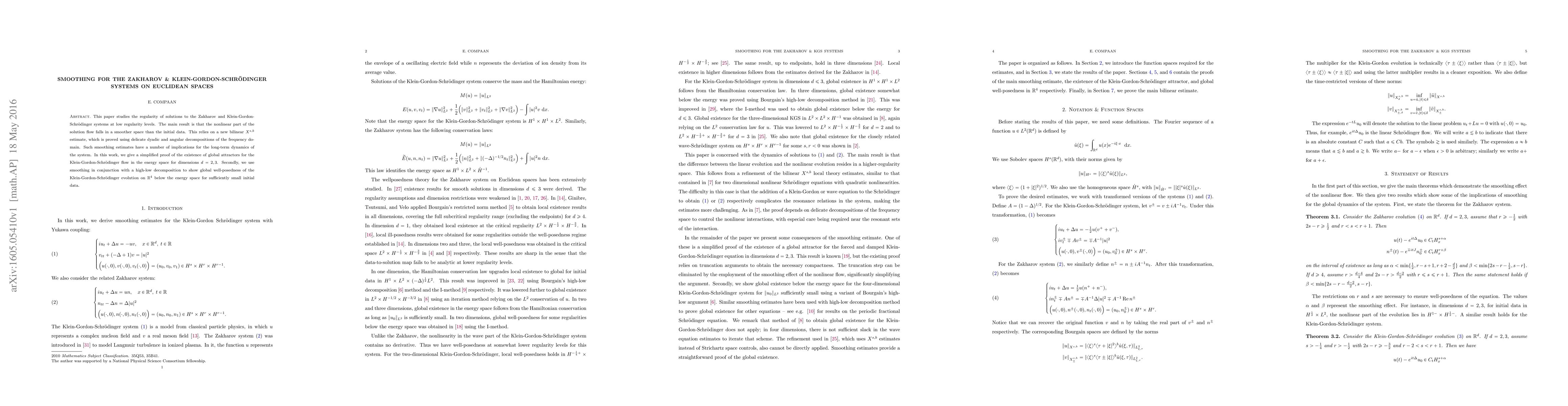This paper investigates the regularity of solutions to the Zakharov and Klein-Gordon-Schrödinger systems, proving that the nonlinear solution flow is smoother than the initial data. It introduces a new bilinear estimate and uses it to demonstrate the existence of global attractors for the Klein-Gordon-Schrödinger flow in dimensions 2 and 3, and global well-posedness in $\mathbb{R}^4$ for small initial data.