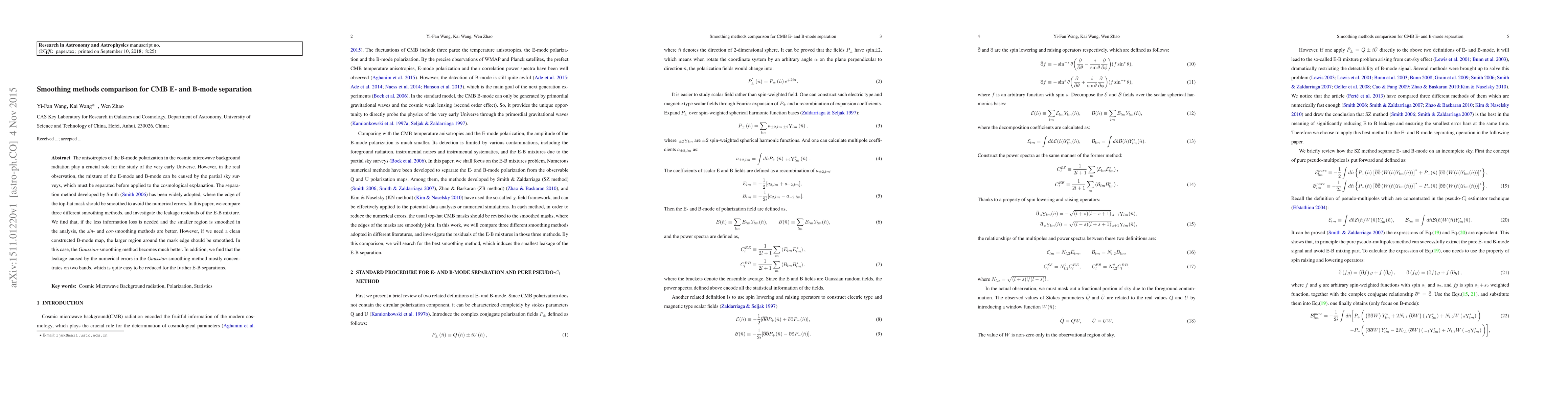This research compares three smoothing methods for separating E- and B-mode polarization in CMB data. It finds that sin- and cos-smoothing are preferable for less information loss and smaller smoothing regions, while Gaussian-smoothing is better for cleaner B-mode maps over larger regions. Gaussian-smoothing shows leakage residuals concentrated in two bands, easily reducible for further E-B separation.