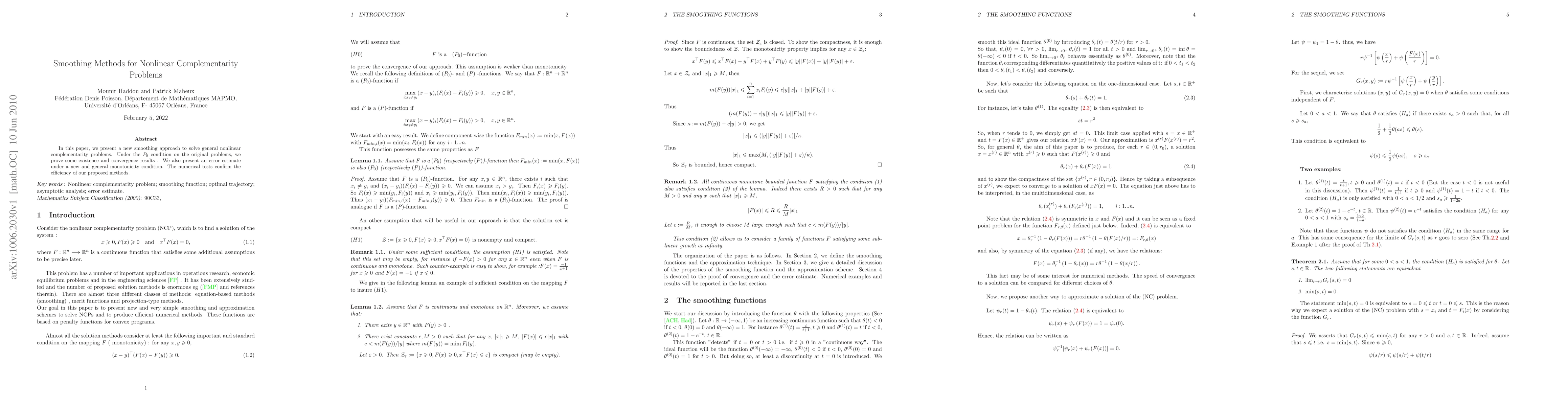 This paper introduces a novel smoothing technique for solving general nonlinear complementarity problems, proving existence and convergence under $P_0$ conditions and presenting an error estimate under a new monotonicity condition. Numerical tests validate the efficiency of the proposed methods.