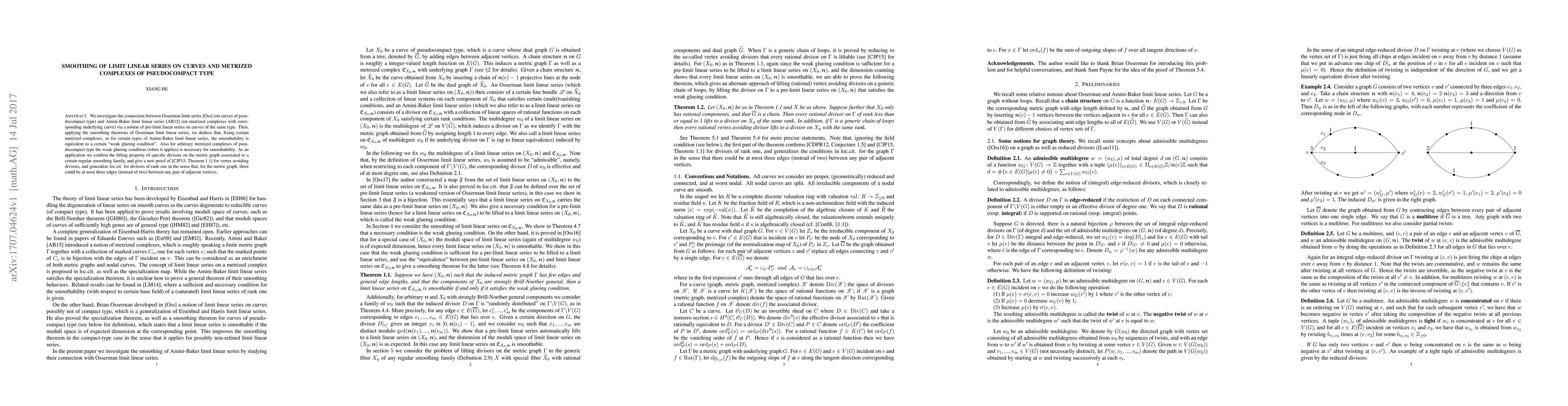 We investigate the connection between Osserman limit series (on curves of pseudocompact type) and Amini-Baker limit linear series (on metrized complexes with corresponding underlying curve) via a notion of pre-limit linear series on curves of the same type. Then, applying the smoothing theorems of Osserman limit linear series, we deduce that, fixing certain metrized complexes, or for certain types of Amini-Baker limit linear series, the smoothability is equivalent to a certain "weak glueing condition". Also for arbitrary metrized complexes of pseudocompact type the weak glueing condition (when it applies) is necessary for smoothability. As an application we confirm the lifting property of specific divisors on the metric graph associated to a certain regular smoothing family, and give a new proof of the main theorem in the paper of Cartwright, Jensen and Payne for vertex avoiding divisors, and generalize loc.cit. for divisors of rank one in the sense that, for the metric graph, there could be at most three edges (instead of two) between any pair of adjacent vertices.