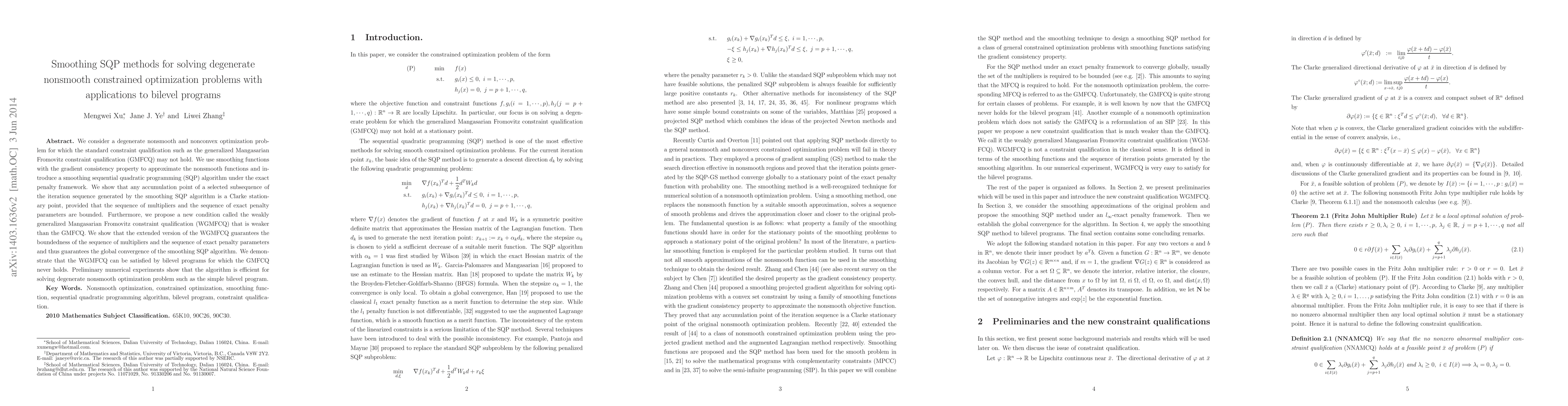 This paper proposes a smoothing sequential quadratic programming (SQP) method for solving degenerate nonsmooth optimization problems, introducing a new weakly generalized Mangasarian Fromovitz constraint qualification (WGMFCQ) that ensures global convergence. The algorithm is shown to be effective for bilevel programs where traditional constraint qualifications fail.