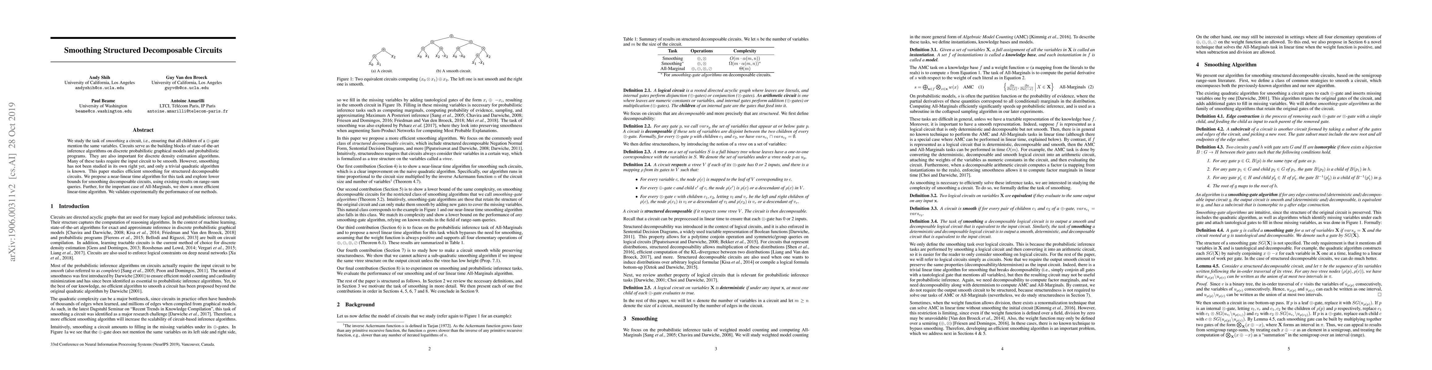 This paper proposes efficient algorithms for smoothing structured decomposable circuits, essential for probabilistic inference algorithms. It introduces a near-linear time algorithm and a linear-time method for the All-Marginals case, validated experimentally.
