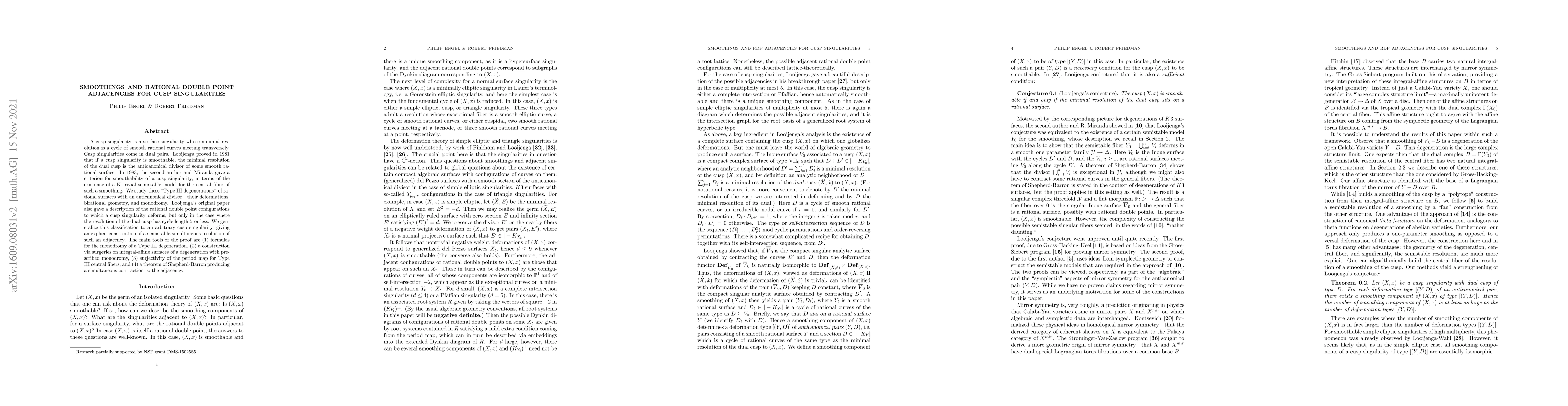 A cusp singularity is a surface singularity whose minimal resolution is a cycle of smooth rational curves meeting transversely. Cusp singularities come in naturally dual pairs. Looijenga proved in 1981 that if a cusp singularity is smoothable, the minimal resolution of the dual cusp is the anticanonical divisor of some smooth rational surface. In 1983, the second author and Miranda gave a criterion for smoothability of a cusp singularity, in terms of the existence of a K-trivial semistable model for the central fiber of such a smoothing. We study these "Type III degenerations" of rational surfaces with an anticanonical divisor--their deformations, birational geometry, and monodromy. Looijenga's original paper also gave a description of the rational double point configurations to which a cusp singularity deforms, but only in the case where the resolution of the dual cusp has cycle length 5 or less. We generalize this classification to an arbitrary cusp singularity, giving an explicit construction of a semistable simultaneous resolution of such an adjacency. The main tools of the proof are (1) formulas for the monodromy of a Type III degeneration, (2) a construction via surgeries on integral-affine surfaces of a degeneration with prescribed monodromy, (3) surjectivity of the period map for Type III central fibers, and (4) a theorem of Shepherd-Barron producing the simultaneous contraction to the adjacency of the cusp singularity.