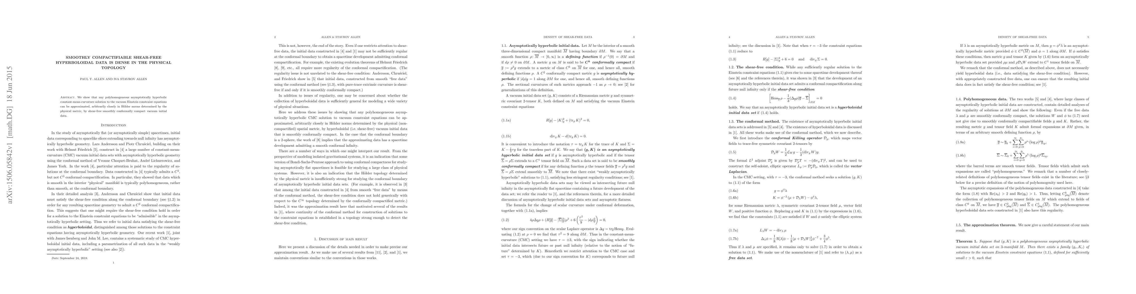 We show that any polyhomogeneous asymptotically hyperbolic constant-mean-curvature solution to the vacuum Einstein constraint equations can be approximated, arbitrarily closely in H\"older norms determined by the physical metric, by shear-free smoothly conformally compact vacuum initial data.