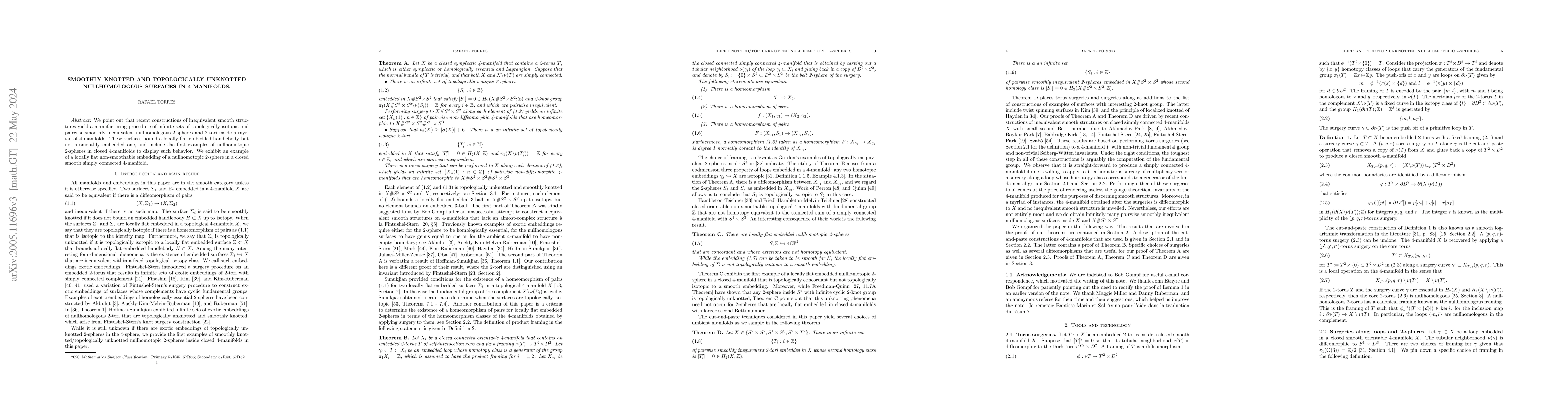 We point out that recent constructions of inequivalent smooth structures yield a manufacturing procedure of infinite sets of pairwise smoothly non-isotopic nullhomologous 2-tori and spheres inside a myriad of 4-manifolds. The corresponding infinite set consists of topologically isotopic surfaces that topologically bound a handlebody in several instances.