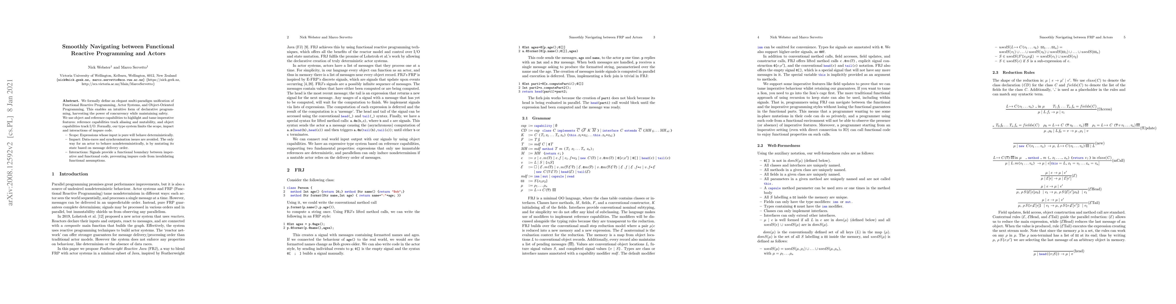 We formally define an elegant multi-paradigm unification of Functional Reactive Programming, Actor Systems, and Object-Oriented Programming. This enables an intuitive form of declarative programming, harvesting the power of concurrency while maintaining safety. We use object and reference capabilities to highlight and tame imperative features: reference capabilities track aliasing and mutability, and object capabilities track I/O. Formally, our type system limits the scope, impact and interactions of impure code. - Scope: Expressions whose input is pure will behave deterministically. - Impact: Data-races and synchronisation issues are avoided. The only way for an actor to behave nondeterministically, is by mutating its state based on message delivery order. - Interactions: Signals provide a functional boundary between imperative and functional code, preventing impure code from invalidating functional assumptions.