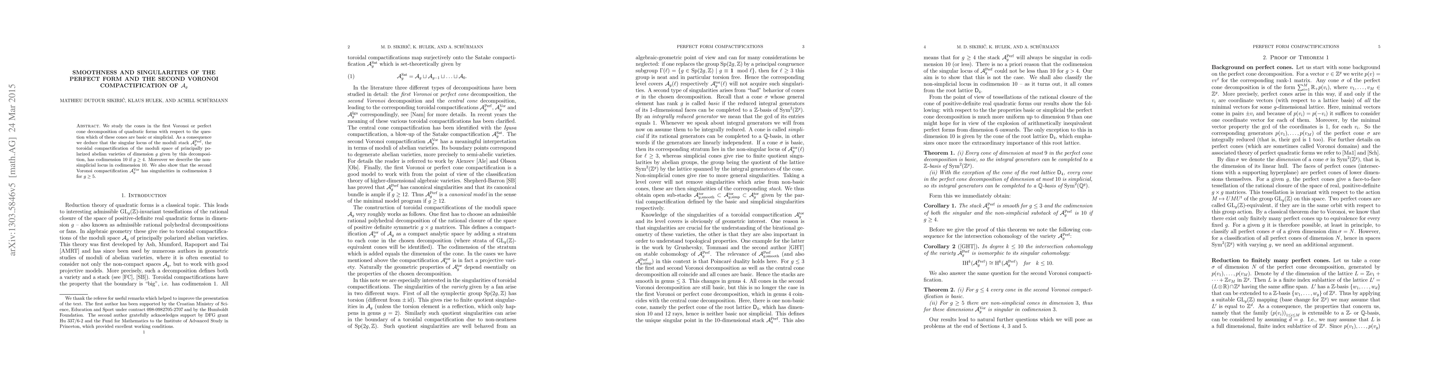 This paper investigates the cones in the perfect cone decomposition of quadratic forms, determining which are basic or simplicial. It finds that the singular locus of the toroidal compactification of the moduli space of principally polarized abelian varieties has codimension 10 for $g \geq 4$, and describes the non-simplicial locus. Additionally, it reveals that the second Voronoi compactification exhibits singularities in codimension 3 for $g \geq 5$.