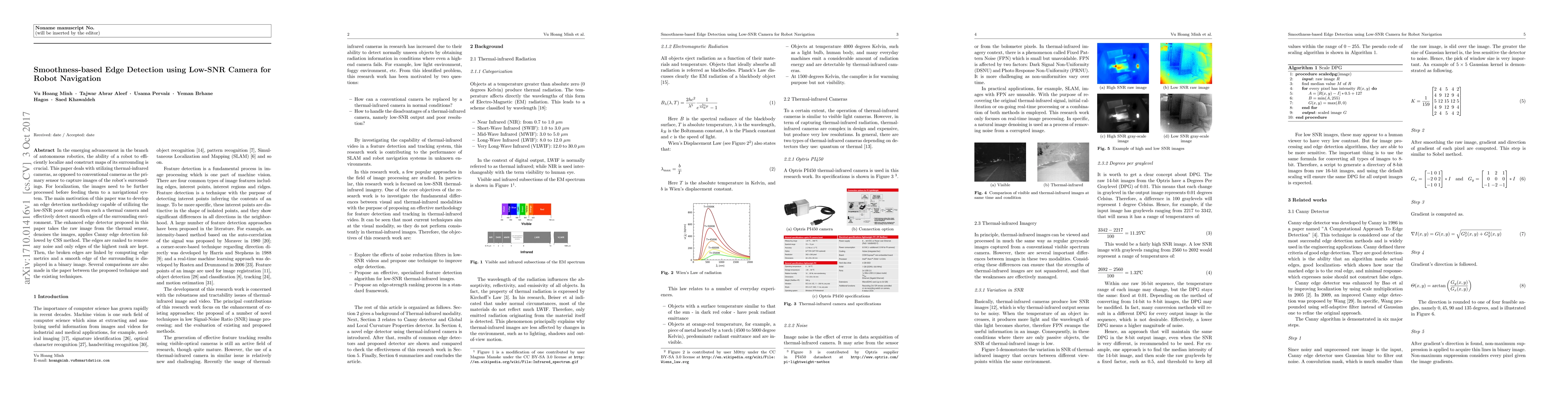 This paper introduces a novel edge detection method for thermal-infrared camera images, crucial for autonomous robot navigation in low-SNR conditions. The technique denoises images, applies Canny edge detection and CSS method, ranks edges, links broken edges, and displays smooth edges in binary form, outperforming existing methods in tests.