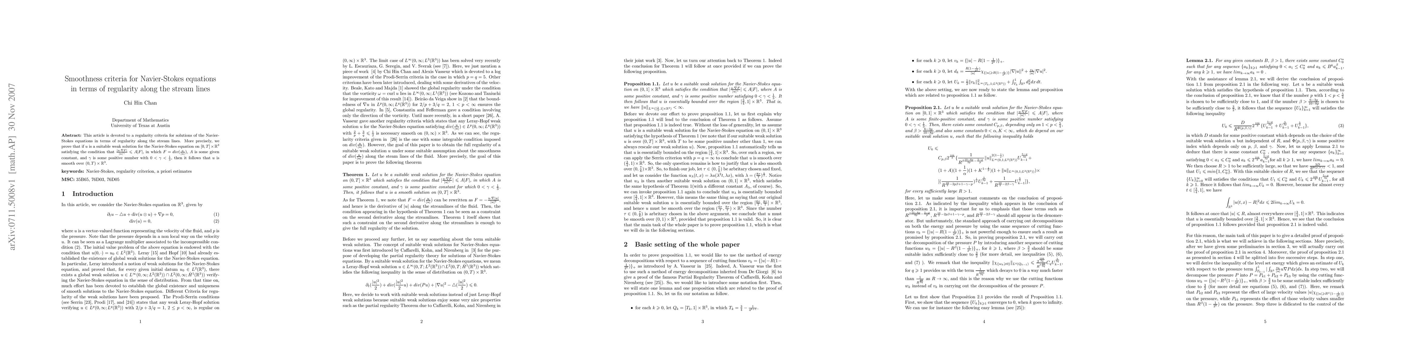 This paper establishes a regularity criterion for weak solutions of the Navier-Stokes equations based on the smoothness of the velocity field along streamlines. It proves that a weak solution remains regular if the second derivative of the velocity magnitude along streamlines satisfies certain conditions.