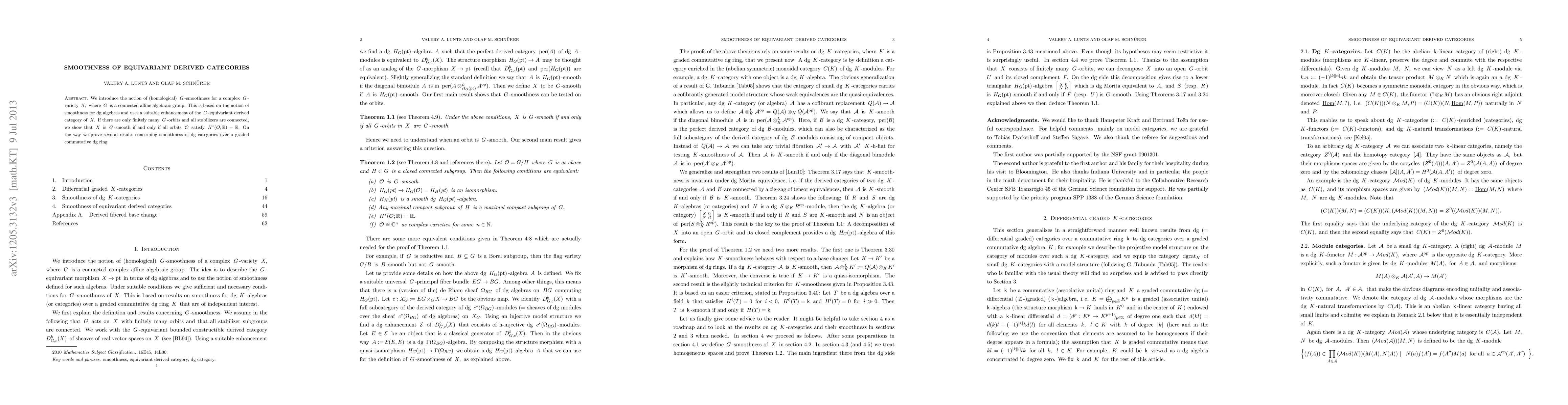 We introduce the notion of (homological) G-smoothness for a complex G-variety X, where G is a connected affine algebraic group. This is based on the notion of smoothness for dg algebras and uses a suitable enhancement of the G-equivariant derived category of X. If there are only finitely many G-orbits and all stabilizers are connected, we show that X is G-smooth if and only if all orbits O satisfy H^*(O; R)=R. On the way we prove several results concerning smoothness of dg categories over a graded commutative dg ring.
