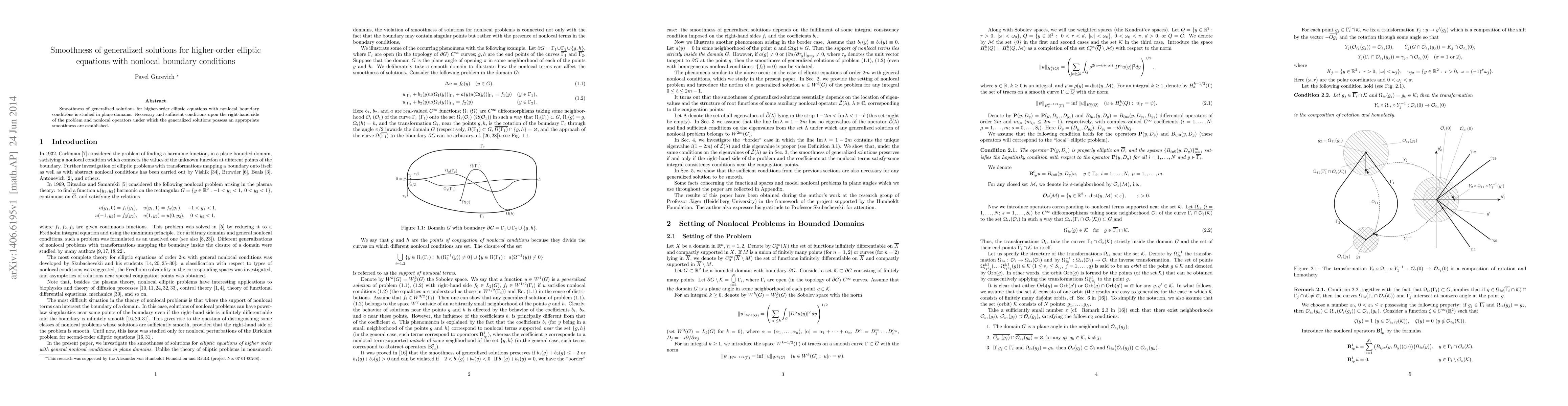 This paper investigates the smoothness of generalized solutions for higher-order elliptic equations in plane domains with nonlocal boundary conditions. It establishes necessary and sufficient conditions for the right-hand side and nonlocal operators to ensure the desired smoothness of these solutions.