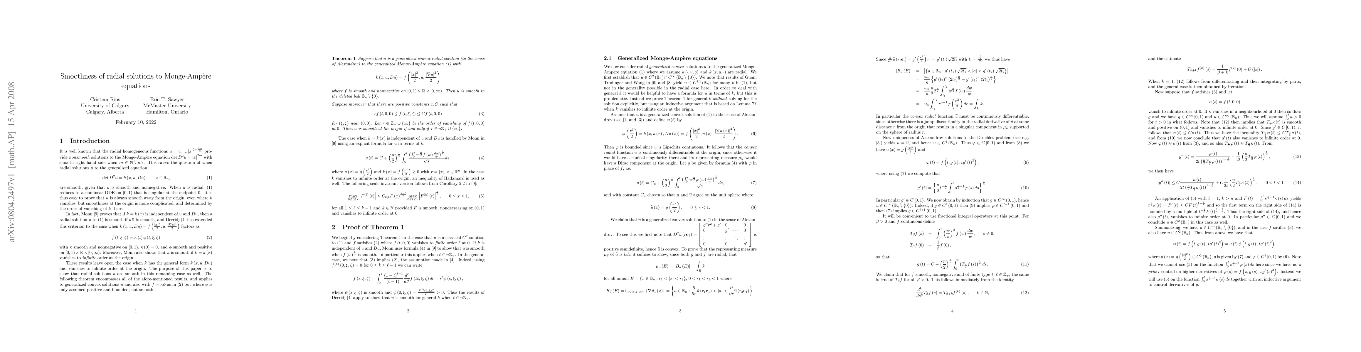 This paper characterizes the conditions under which radial weak solutions to Monge-Ampere equations are smooth, extending previous results and addressing Generalized Monge-Ampere equations with an infinitely vanishing right-hand side.