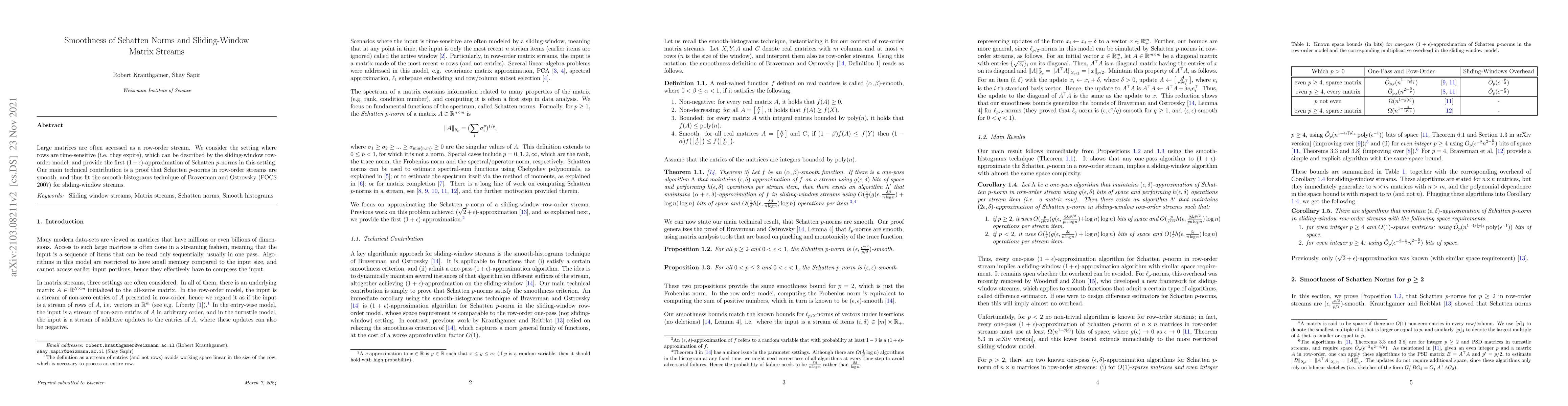 Large matrices are often accessed as a row-order stream. We consider the setting where rows are time-sensitive (i.e. they expire), which can be described by the sliding-window row-order model, and provide the first $(1+\epsilon)$-approximation of Schatten $p$-norms in this setting. Our main technical contribution is a proof that Schatten $p$-norms in row-order streams are smooth, and thus fit the smooth-histograms technique of Braverman and Ostrovsky (FOCS 2007) for sliding-window streams.
