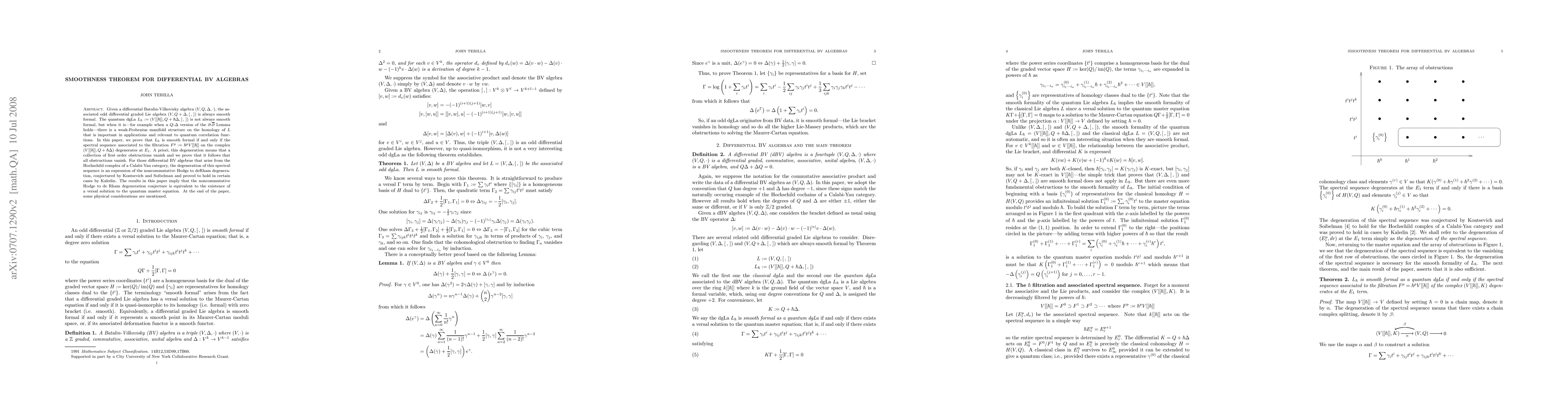 Associated to a differential BV algebra are two differential graded Lie algebras: we call one classical and the other, which contains a formal h-bar parameter, quantum. The classical dgLa is always smooth formal. In this paper, we give necessary and sufficient conditions for the quantum dgLa to be smooth formal. These conditions are equivalent to the degeneration of a version of the noncommutative Hodge to de Rham spectral sequence. References added.