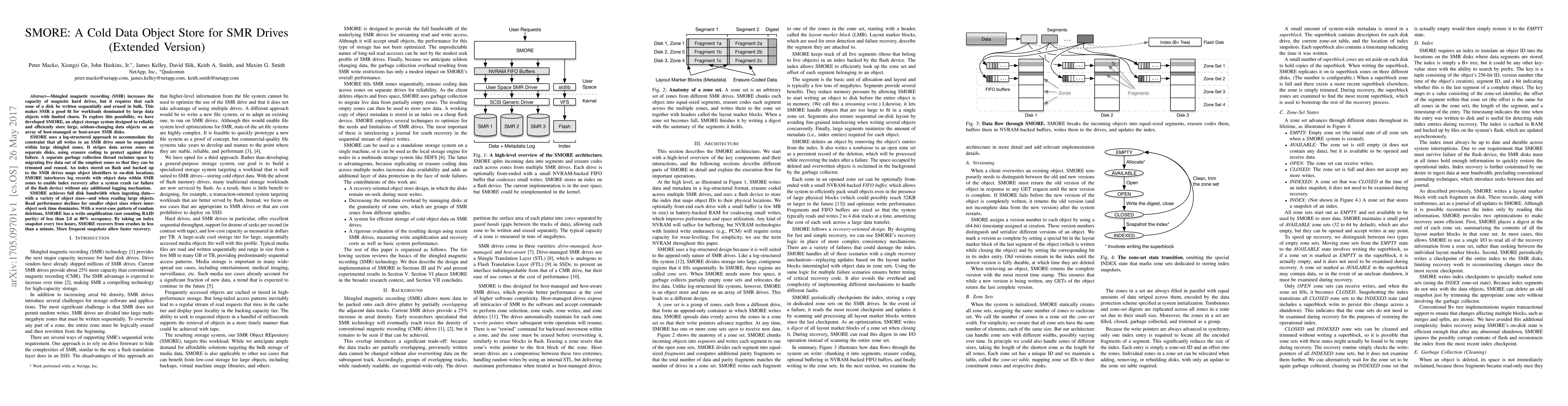 The proposed object storage system leverages log-structured data storage to achieve high performance and reduce write amplification on host-managed or host-aware SMR disks.