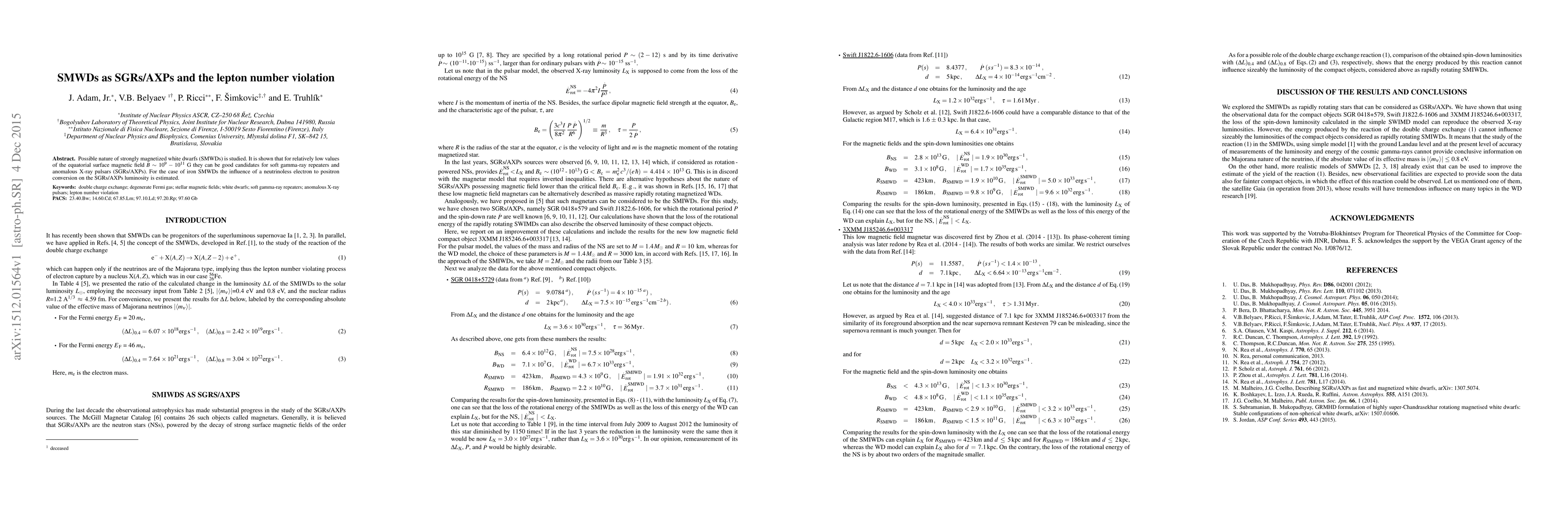 This paper explores the potential of strongly magnetized white dwarfs (SMWDs) as candidates for soft gamma-ray repeaters and anomalous X-ray pulsars (SGRs/AXPs) under low equatorial magnetic fields. It also estimates the impact of neutrinoless electron to positron conversion on the luminosity of iron SMWDs in this context.