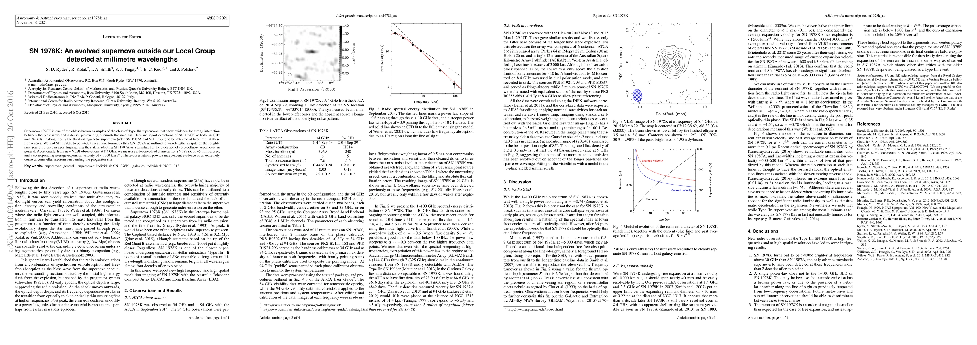 Supernova 1978K is one of the oldest-known examples of the class of Type IIn supernovae that show evidence for strong interaction between the blast wave and a dense, pre-existing circumstellar medium. Here we report detections of SN 1978K at both 34 GHz and 94 GHz, making it only the third extragalactic supernova (after SN 1987A and SN 1996cr) to be detected at late-times at these frequencies. We find SN 1978K to be >400 times more luminous than SN 1987A at millimetre wavelengths in spite of the roughly nine year difference in ages, highlighting the risk in adopting SN 1987A as a template for the evolution of core-collapse supernovae in general. Additionally, from new VLBI observations at 8.4 GHz, we measure a deconvolved diameter for SN 1978K of ~5 milli-arcsec, and a corresponding average expansion velocity of <1500 km/s. These observations provide independent evidence of an extremely dense circumstellar medium surrounding the progenitor star.