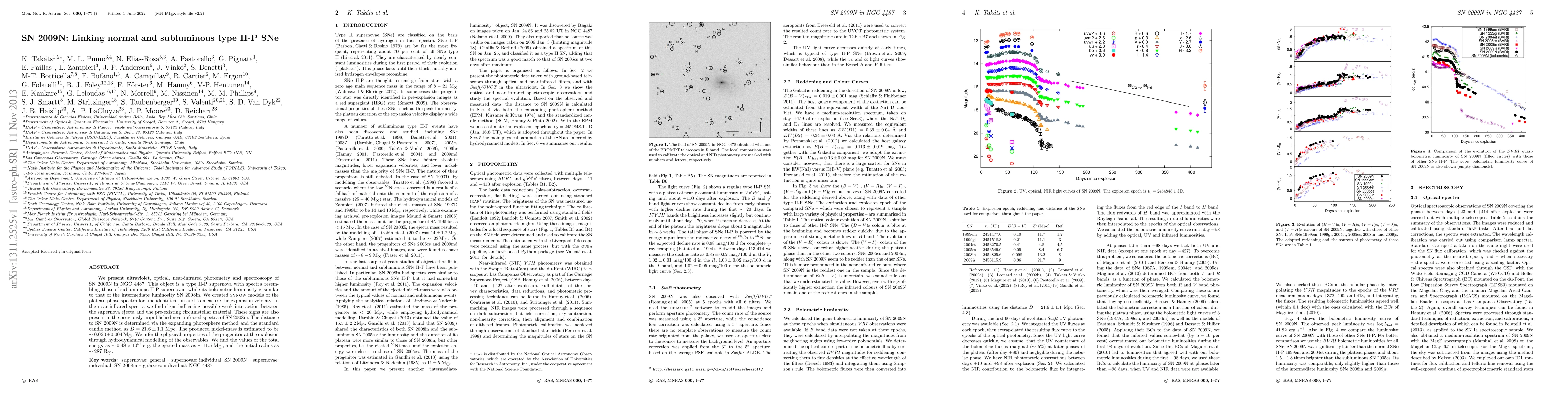 We present ultraviolet, optical, near-infrared photometry and spectroscopy of SN 2009N in NGC 4487. This object is a type II-P supernova with spectra resembling those of subluminous II-P supernovae, while its bolometric luminosity is similar to that of the intermediate luminosity SN 2008in. We created SYNOW models of the plateau phase spectra for line identification and to measure the expansion velocity. In the near-infrared spectra we find signs indicating possible weak interaction between the supernova ejecta and the pre-existing circumstellar material. These signs are also present in the previously unpublished near-infrared spectra of SN 2008in. The distance to SN 2009N is determined via the expanding photosphere method and the standard candle method as $D= 21.6 \pm 1.1\,{\mathrm {Mpc}}$. The produced nickel-mass is estimated to be $\sim 0.020 \pm 0.004\,{\mathrm M_\odot}$. We infer the physical properties of the progenitor at the explosion through hydrodynamical modelling of the observables. We find the values of the total energy as $\sim 0.48 \times 10^{51}\, {\mathrm {erg}}$, the ejected mass as $\sim 11.5\,{\mathrm M_\odot}$, and the initial radius as $\sim 287\,{\mathrm R_\odot}$.