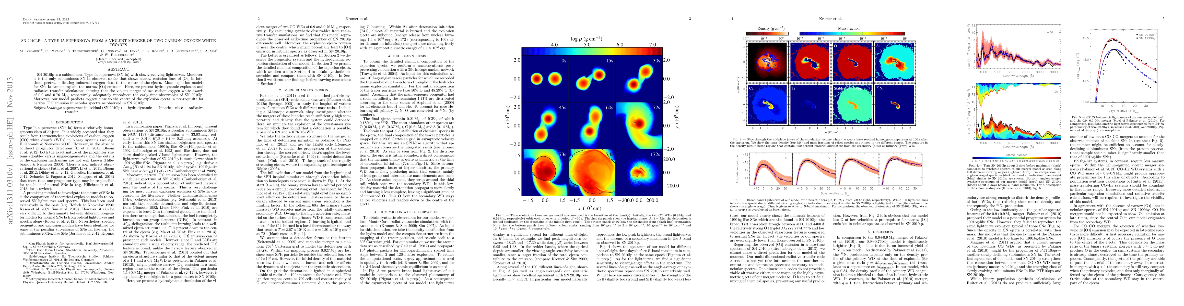 SN 2010lp is a subluminous Type Ia supernova with unique late-time spectra showing narrow OI emission lines. Hydrodynamic calculations suggest its origin is from a merger of two carbon-oxygen white dwarfs, which explains its observables and predicts unburned oxygen near the explosion center.