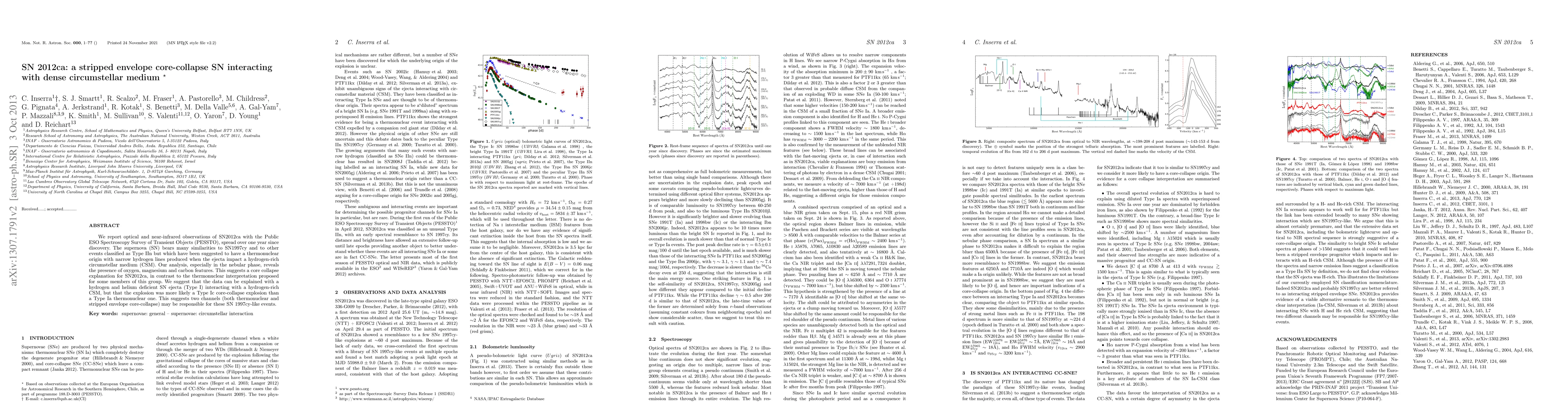 SN 2012ca is analyzed as a Type IIn supernova with features suggesting a core-collapse origin rather than a thermonuclear one, interacting with a dense, hydrogen-rich circumstellar medium. The findings suggest a core-collapse explosion, possibly Type Ic, rather than a Type Ia thermonuclear event.