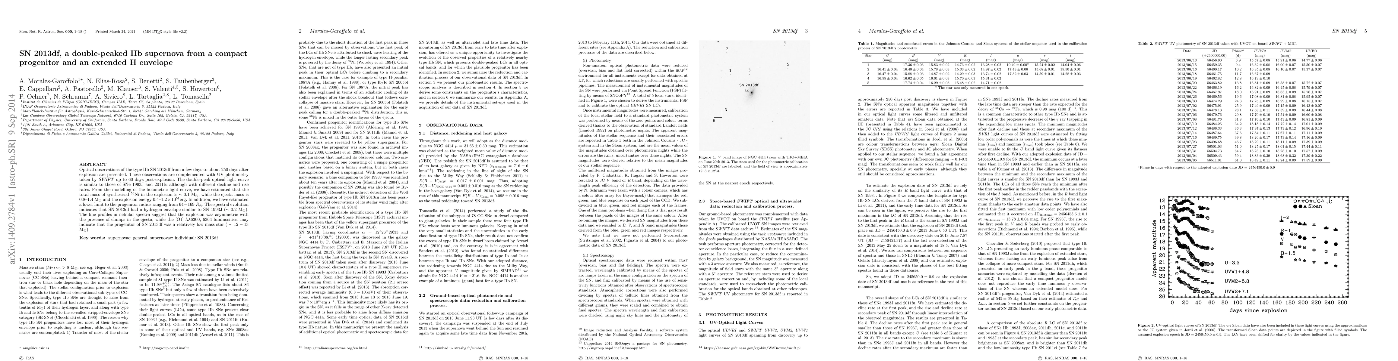 SN 2013df is a type IIb supernova characterized by a double-peaked light curve and an extended hydrogen envelope. The progenitor is estimated to be a compact, low-mass star with an asymmetric explosion producing clumps in the ejecta.