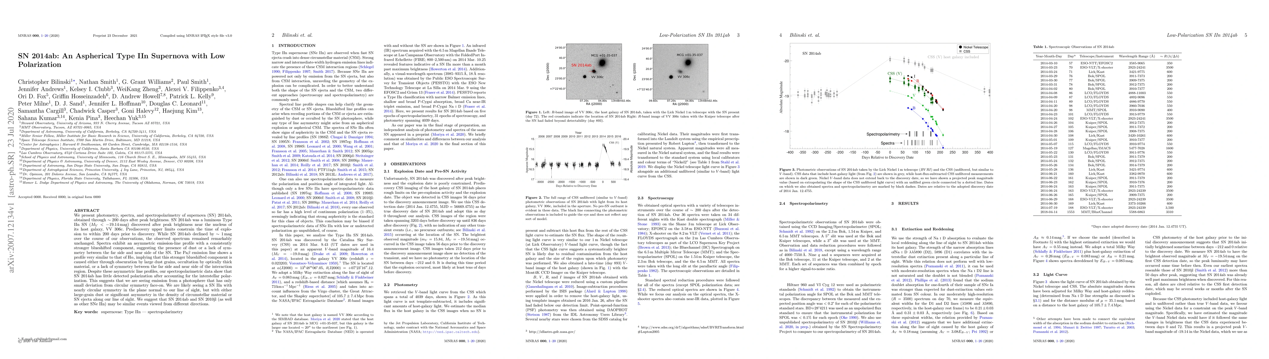SN 2014ab is an unusually asymmetrical Type IIn supernova with low polarization, suggesting it may be viewed from a unique angle due to dust or circumstellar material asymmetry.