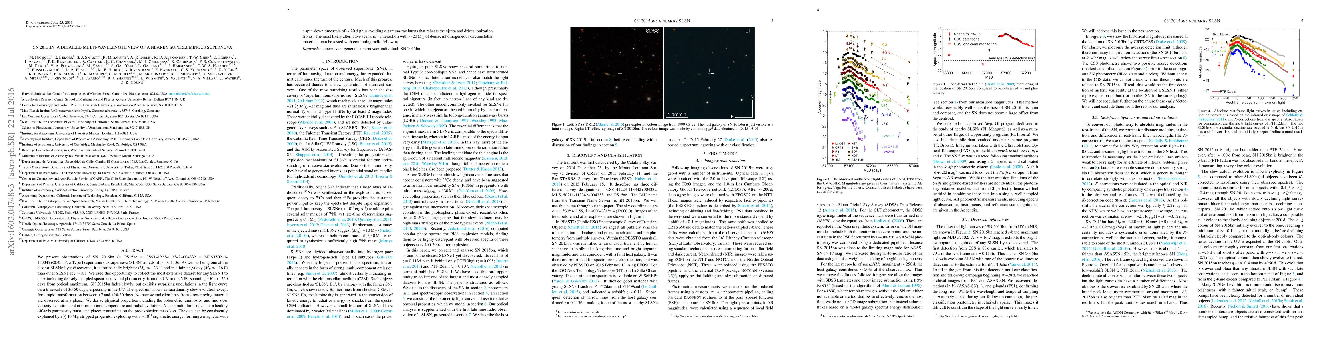 SN 2015bn is a nearby, exceptionally bright Type I superluminous supernova with unusual light curve undulations and slow spectral evolution. The data suggest it resulted from a massive stripped progenitor star, possibly forming a magnetar that reheats the ejecta.