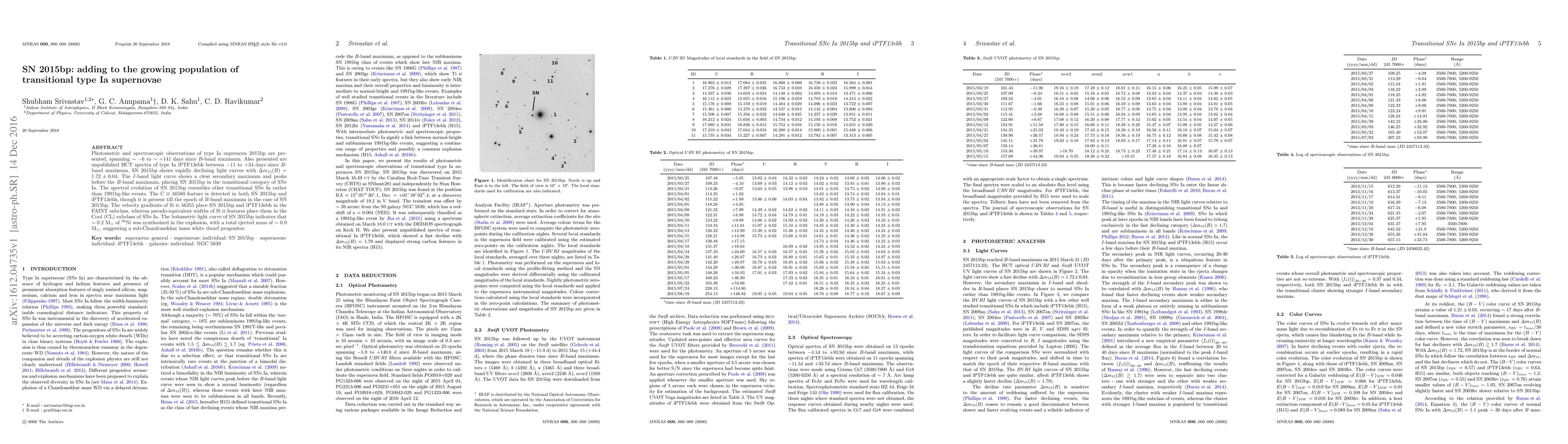 This study presents photometric and spectroscopic observations of a transitional type Ia supernova, SN 2015bp, showing rapidly declining light curves and characteristics similar to other FAINT subclass SNe Ia, suggesting a sub-Chandrasekhar mass white dwarf progenitor.