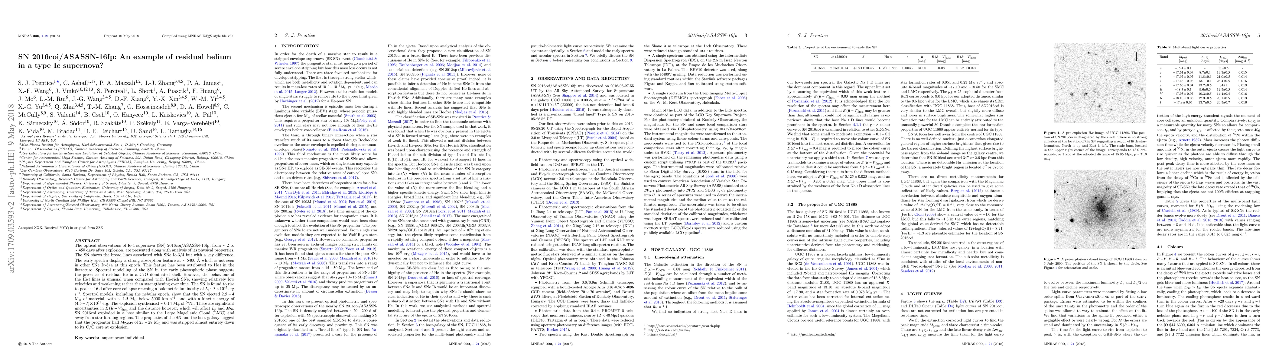 This paper investigates the peculiar Type Ic supernova SN 2016coi/ASASSN-16fp, noting its strong He I absorption feature indicative of residual helium in a C/O dominated shell. The analysis suggests the progenitor was a massive star stripped down to its core, with the supernova ejecting significant material and synthesizing a notable amount of nickel.