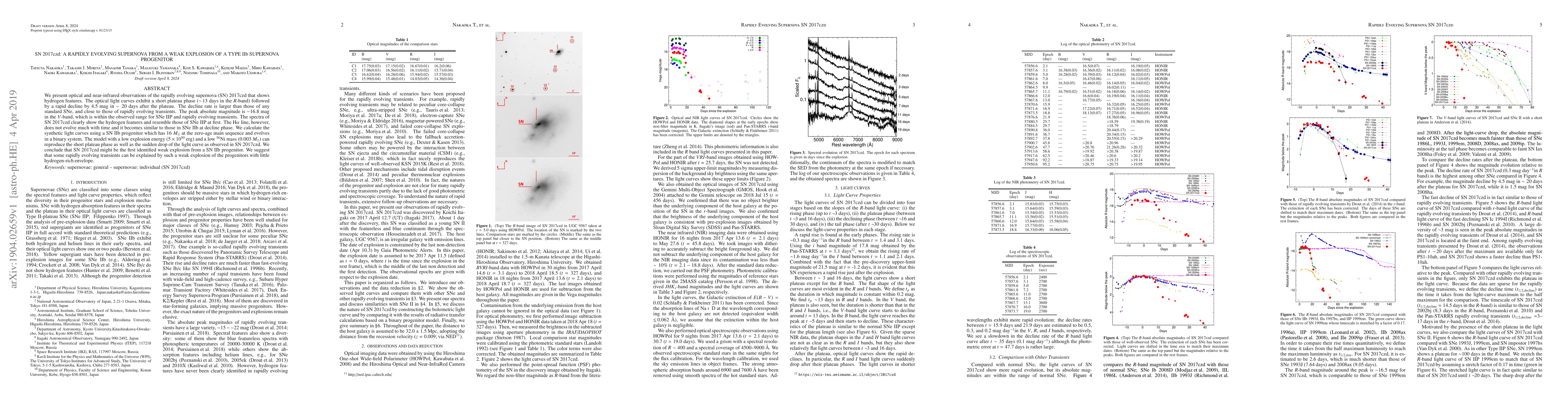 SN 2017czd is a rapidly evolving supernova with hydrogen features, exhibiting a short plateau followed by a rapid decline, suggesting it may be a weak explosion from a Type IIb progenitor. The model of a low-energy explosion from a binary system progenitor fits the observed light curve.