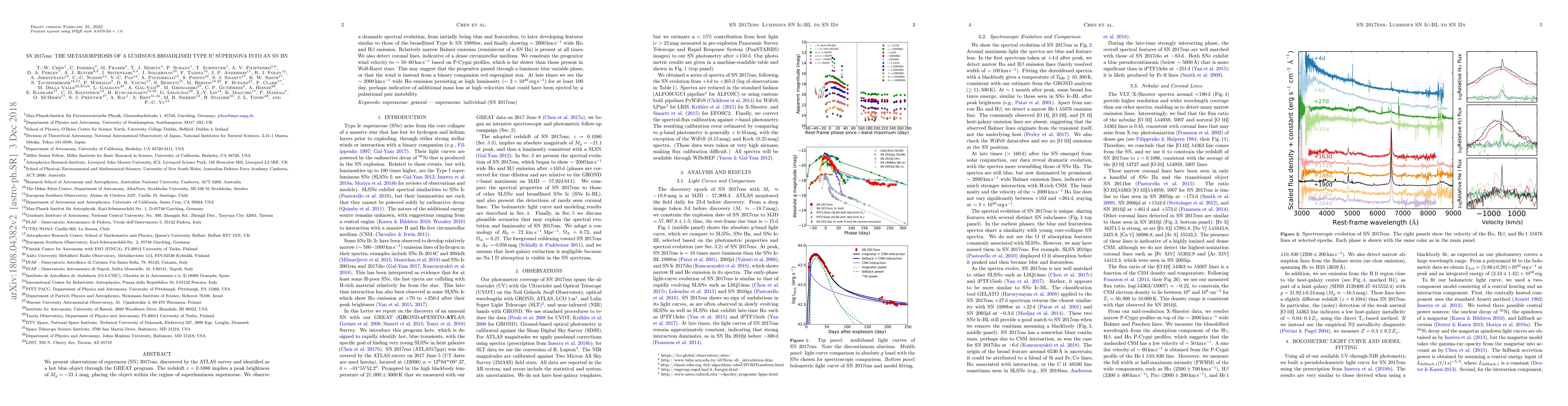 We present observations of supernova (SN) 2017ens, discovered by the ATLAS survey and identified as a hot blue object through the GREAT program. The redshift z=0.1086 implies a peak brightness of M_g=-21.1 mag, placing the object within the regime of superluminous supernovae. We observe a dramatic spectral evolution, from initially being blue and featureless, to later developing features similar to those of the broadlined Type Ic SN 1998bw, and finally showing ~2000 km s^-1 wide H-alpha and H-beta emission. Relatively narrow Balmer emission (reminiscent of a SN IIn) is present at all times. We also detect coronal lines, indicative of a dense circumstellar medium. We constrain the progenitor wind velocity to ~50-60 km s^-1 based on P-Cygni profiles, which is far slower than those present in Wolf-Rayet stars. This may suggest that the progenitor passed through a luminous blue variable phase, or that the wind is instead from a binary companion red supergiant star. At late times we see the ~2000 km s^-1 wide H-alpha emission persisting at high luminosity (~3x10^40 erg s^-1) for at least 100 day, perhaps indicative of additional mass loss at high velocities that could have been ejected by a pulsational pair instability.