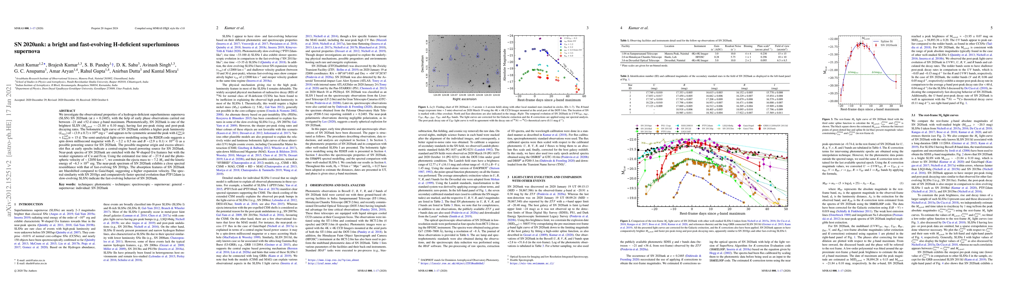 The research paper presents SN 2020ank, a hydrogen-deficient superluminous supernova (SLSN) with exceptional brightness and rapid evolution. Utilizing early-phase observations, the study finds SN 2020ank to be one of the brightest SLSN, with fast rising and decaying light curves. A magnetar model, specifically a spinning down millisecond magnetar with high initial spin period and magnetic field, is proposed as the powering mechanism. The ejecta mass and kinetic energy are estimated, and SN 2020ank is compared to other fast-evolving SLSNs, highlighting its unique spectral and evolutionary characteristics.