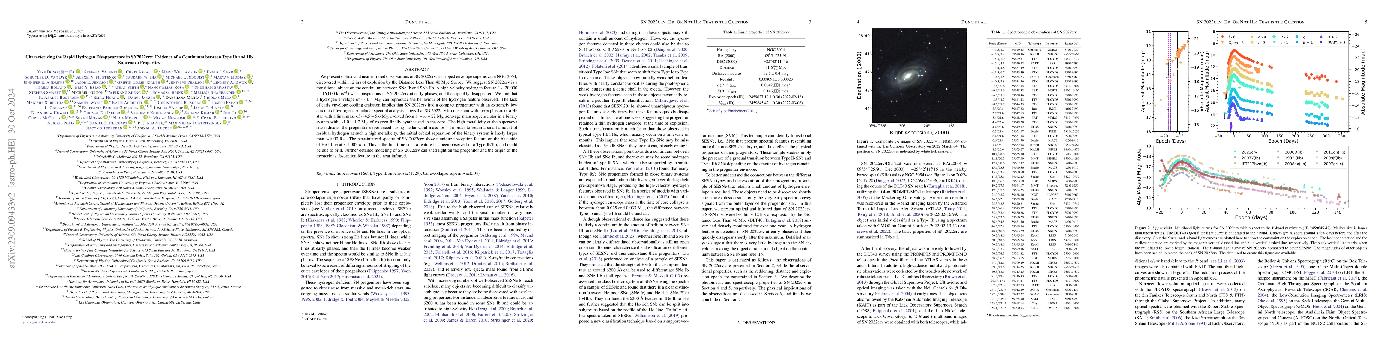 SN 2022crv, a stripped envelope supernova in NGC 3054, exhibits a high-velocity hydrogen feature suggesting it is a transitional object between SNe Ib and IIb. Detailed analysis indicates a compact progenitor with minimal hydrogen and a final mass of 4.5-5.6 \msun, evolved from a 16-22 \msun star in a binary system.