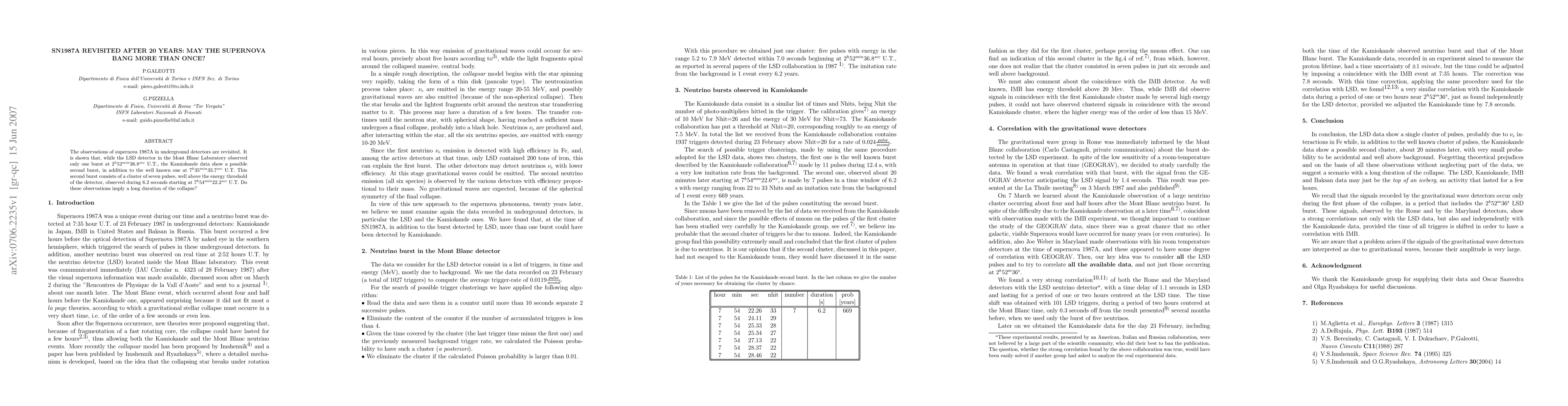 The observations of supernova 1987A in underground detectors are revisited. It is shown that, while the LSD detector in the Mont Blanc Laboratory observed only one burst at 2h 52min 36.8sec U.T., the Kamiokande data show a possible second burst, in addition to the well known one at 7h 35min 33.7sec U.T. This second burst consists of a cluster of seven pulses, well above the energy threshold of the detector, observed during 6.2 seconds starting at 7h 54min 22.2sec U.T. Do these observations imply a long duration of the collapse?
