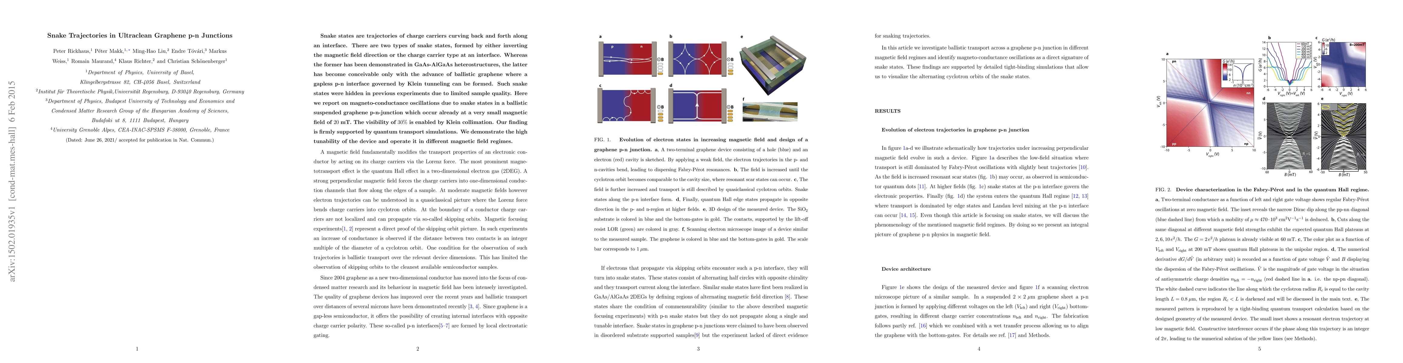 This paper investigates snake states in ultraclean graphene p-n junctions, demonstrating magneto-conductance oscillations at low magnetic fields enabled by Klein tunneling. The findings are supported by quantum transport simulations, showcasing the device's high tunability across various magnetic field regimes.