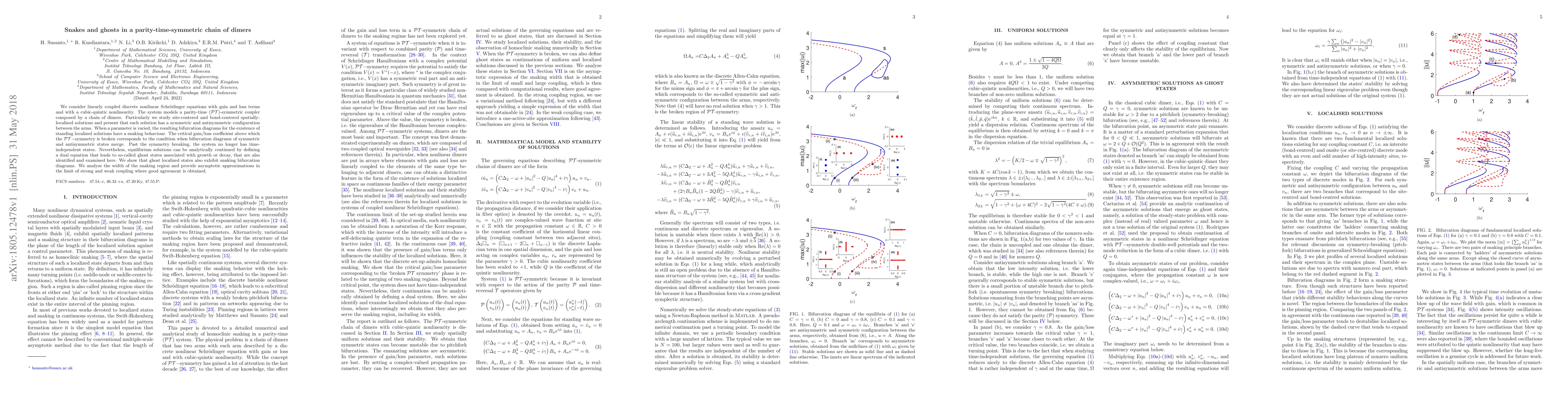 This paper investigates a $\cal{PT}$-symmetric chain of dimers modeled by coupled nonlinear Schrödinger equations with gain and loss, focusing on localized solutions. It reveals snaking bifurcation diagrams in the system's behavior and identifies ghost states emerging after $\cal{PT}$-symmetry breaking, providing analytical approximations for the snaking region width.