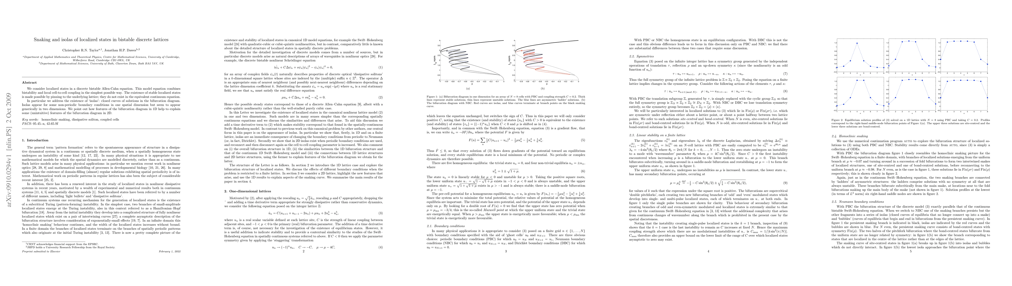 Researchers study localized states in a discrete bistable equation, discovering stable patterns called 'isolas' that only appear in two dimensions, with properties influenced by one-dimensional boundary conditions.