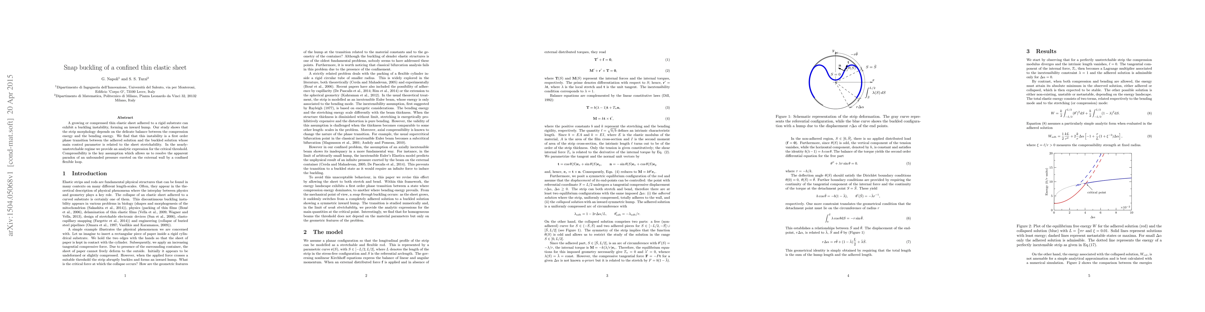 A thin elastic sheet can buckle under compression, forming an inward hump, with the balance between compression energy and bending energy controlling its morphology. The buckling instability is a first-order phase transition that depends on the sheet's stretchability.