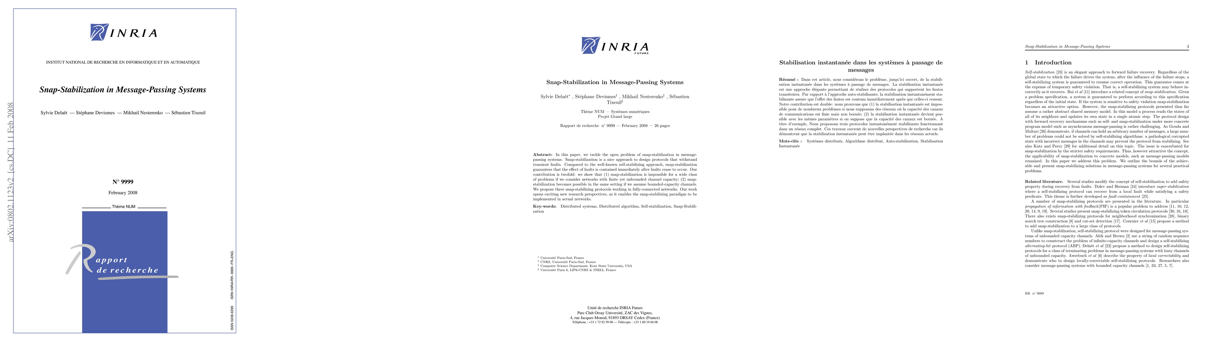 This paper addresses snap-stabilization in message-passing systems, proving its impossibility for networks with unbounded channel capacity but feasibility with bounded-capacity channels. It proposes three protocols for fully-connected networks, advancing the snap-stabilizing paradigm.