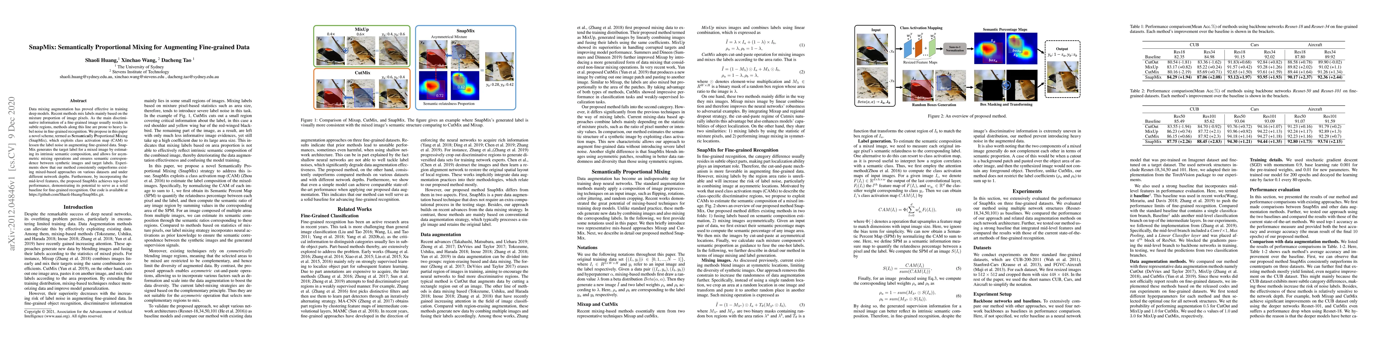 SnapMix introduces a novel data augmentation method that leverages class activation maps to reduce label noise in fine-grained image recognition, achieving superior performance over existing mixed-based approaches across various datasets and network depths. The method ensures semantic correspondence between synthetic images and target labels, demonstrating its effectiveness as a baseline for fine-grained recognition.