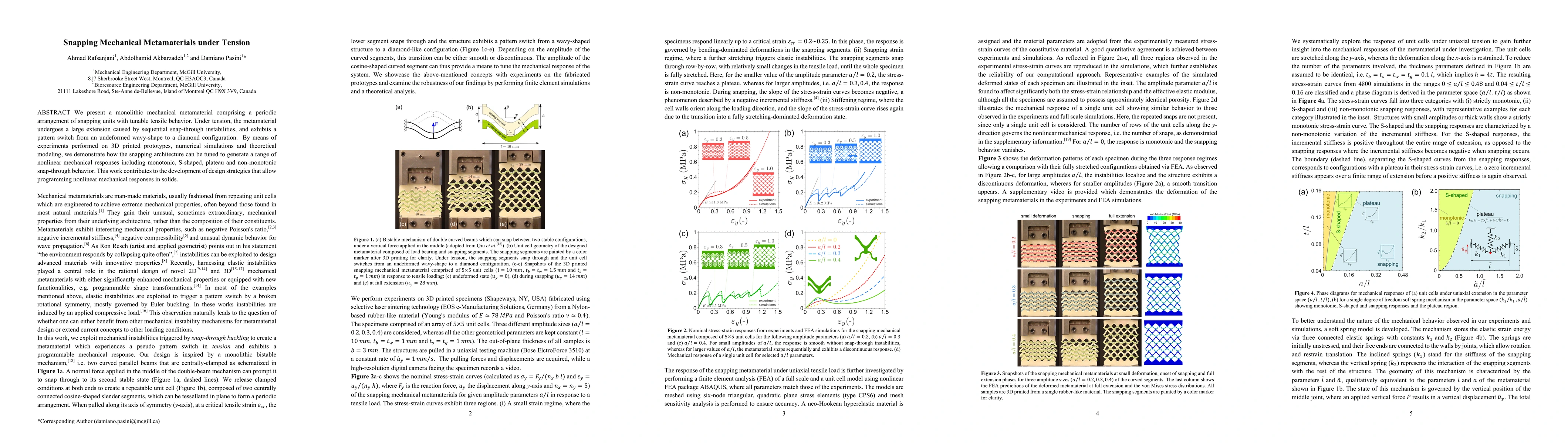 This paper introduces a tunable mechanical metamaterial that exhibits large tensile deformations through sequential snap-through instabilities, transforming from a wavy to a diamond shape. Experiments, simulations, and theoretical models show how its snapping architecture can be adjusted to produce various nonlinear mechanical responses, advancing the design of programmable nonlinear behaviors in solids.