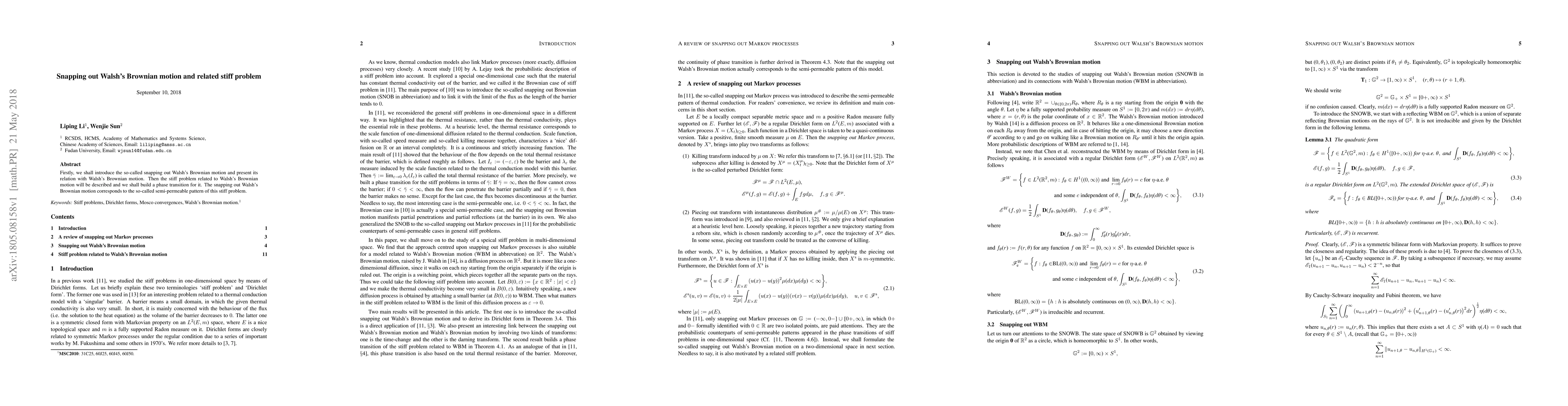 Firstly, we shall introduce the so-called snapping out Walsh's Brownian motion and present its relation with Walsh's Brownian motion. Then the stiff problem related to Walsh's Brownian motion will be described and we shall build a phase transition for it. The snapping out Walsh's Brownian motion corresponds to the so-called semi-permeable pattern of this stiff problem.