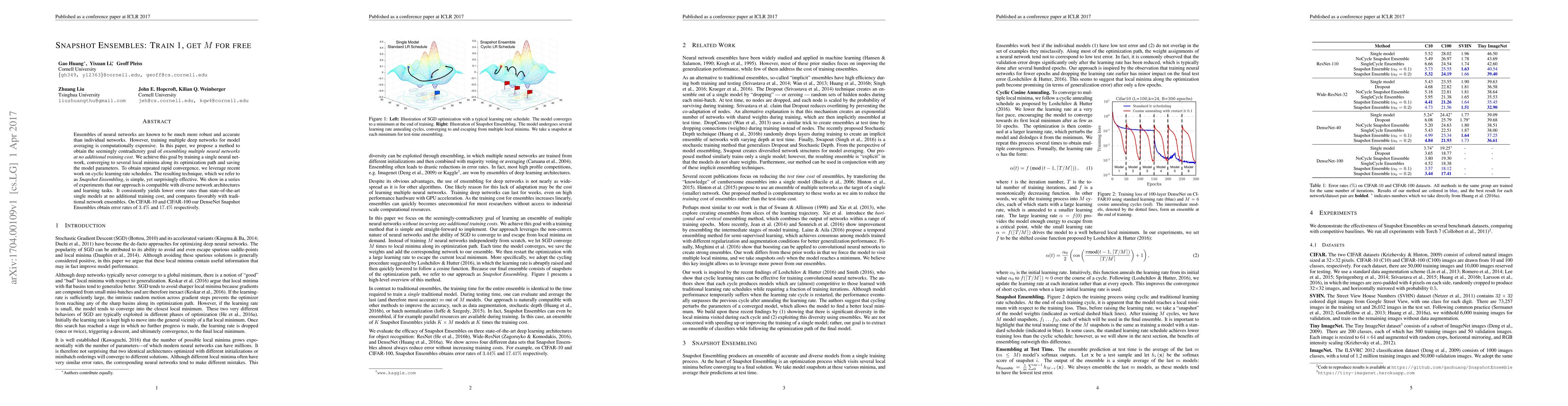 Researchers propose a method to create ensembles of neural networks at no additional training cost by leveraging cyclic learning rate schedules, yielding lower error rates than state-of-the-art single models.