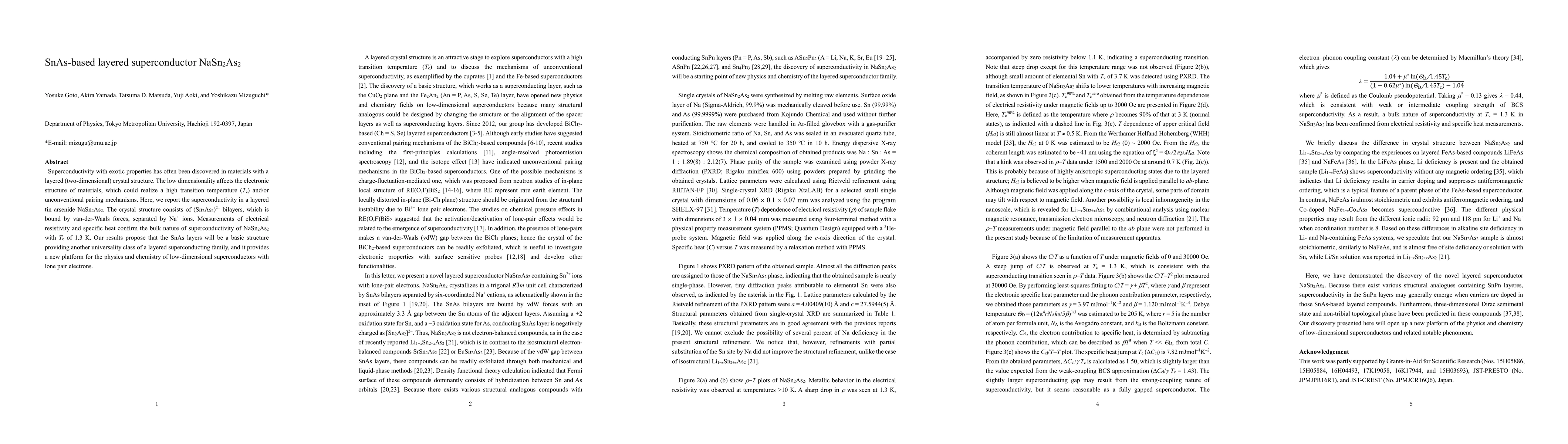 Researchers discovered superconductivity in a layered tin arsenide material, NaSn2As2, with a transition temperature of 1.3 K, offering insights into exotic properties and potential applications for low-dimensional superconductors.